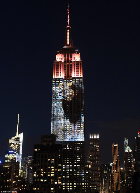 Người dân và khách tham quan New York đã được chứng kiến màn trình diễn ánh sáng tại tòa nhà Empire State vào tối 2/8 vừa qua. 160 loài động vật gồm báo tuyết, hổ, vượn cáo, chim, rắn cùng các loài sinh vật biển đã lần lượt được chiếu hình ảnh lên tòa nhà. Chương trình này được tổ chức nhằm gây sự chú ý của cộng đồng về các loài động vật hoang dã đang có nguy cơ tuyệt chủng.