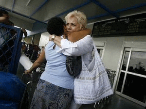 | Đón chào người thân từ Mỹ trở về tại sân bay ở Havana. (Ảnh Reuters) |