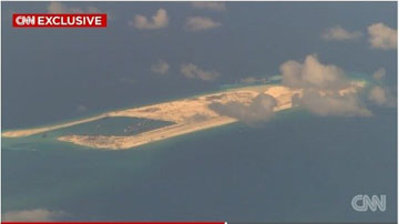 | Đá Chữ Thập thuộc quần đảo Trường Sa của Việt Nam nhìn từ máy bay tuần tra săn ngầm P-8A Poseidon của Mỹ ngày 20/5 (Nguồn: CNN). |