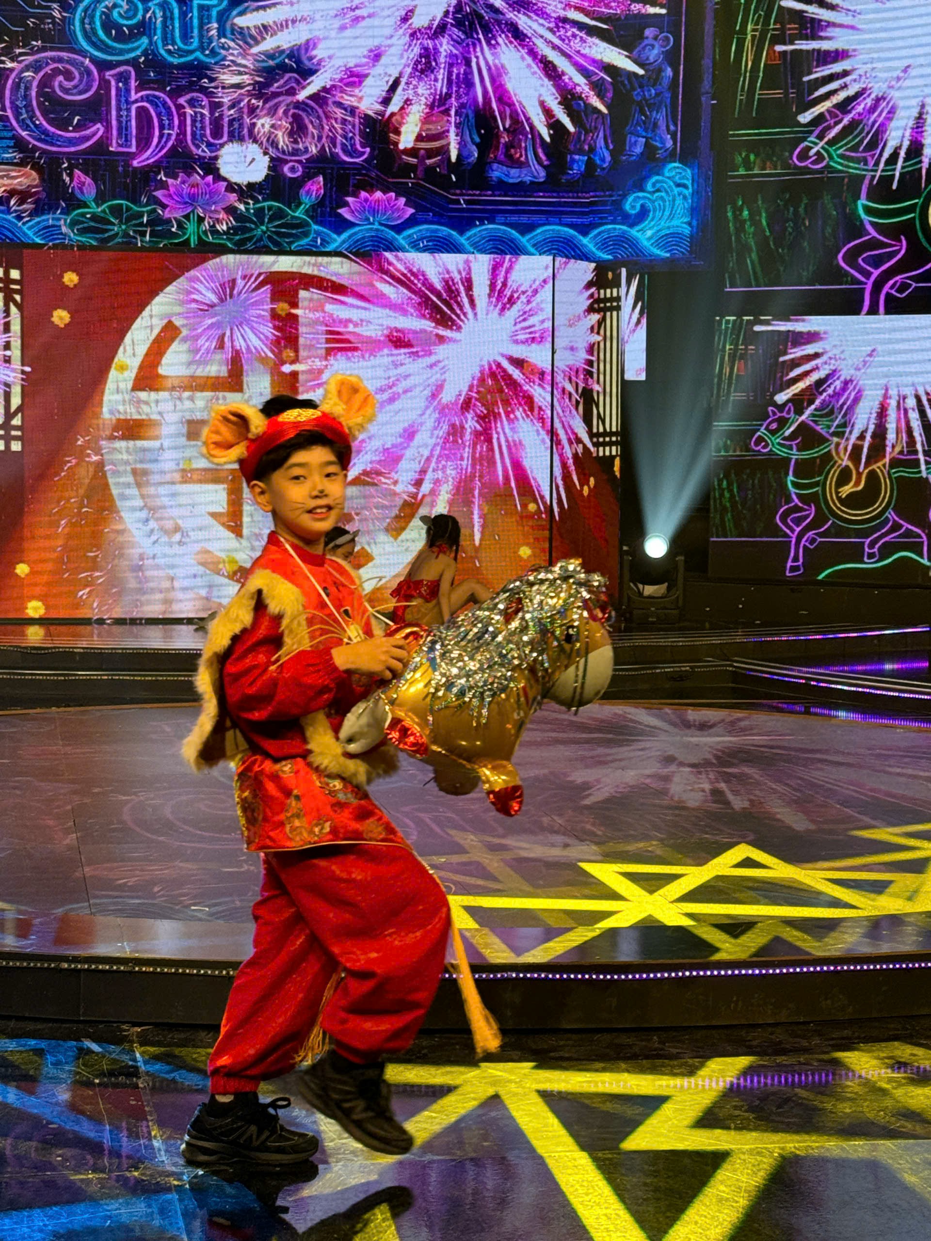 Cùng với các hoạt động thiện nguyện, Minh Triết còn là gương mặt quen thuộc tại nhiều chương trình nghệ thuật quy mô lớn. Tối 8/2, trước thềm Xuân Bính Ngọ 2026, tại Trung tâm Hội nghị Quốc gia ở Thủ đô Hà Nội, em vinh dự tham gia chương trình Xuân Quê hương 2026 với chủ đề “Khát vọng Việt Nam: Hòa bình, Thịnh vượng”.