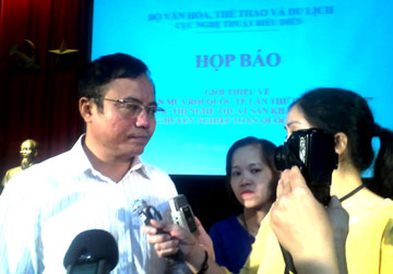 | Cục trưởng Cục Nghệ thuật Biểu diễn Nguyễn Đăng Chương trả lời phỏng vấn báo chí sau cuộc họp báo, ngày 6/10. (Ảnh: M.H) |