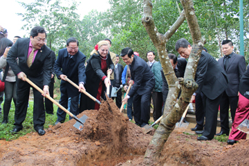 | Chủ tịch nước Trương Tấn Sang, Thứ trưởng Ngoại giao Nguyễn Thanh Sơn và bà Katherine Muller Marin, Trưởng đại diện UNESCO... cùng đại diện lãnh đạo các bộ, ngành trồng cây lưu niệm hưởng ứng Tết trồng cây đầu Xuân. |