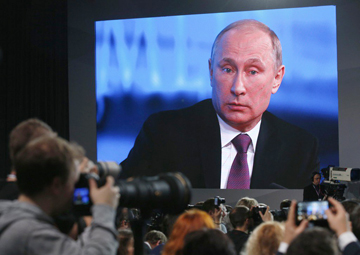 | Họp báo cuối năm 2014 của Tổng thống Nga Putin thu hút sự quan tâm đặc biệt của dư luận. |