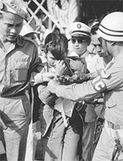 | Cảnh ông Hà Minh Trí bị bắt giữ sau khi ám sát Ngô Đình Diệm không thành, tháng 2/1957. |