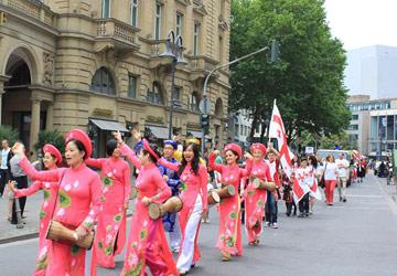 | Trang phục truyền thống của Việt Nam trong một lễ hội văn đường phố tại Đức. |
