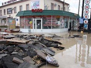 | Cảnh ngập lụt trên các đường phố ở Krasnodar. (Nguồn: AFP/TTXVN) |