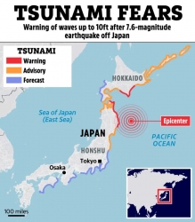 | Động đất lớn ở Nhật Bản: Nguy cơ sóng thần 3m; cảnh báo hàng loạt dư chấn lớn những ngày tới Một trận động đất 7.6 độ Richter đã làm rung chuyển phần lớn miền Bắc và miền Đông Nhật Bản tối 8/12. |