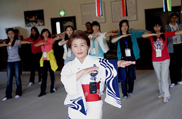 | Du khách Trung Quốc đang tập Gujo Hachiman, một điệu nhảy truyền thống ở Nhật Bản. |