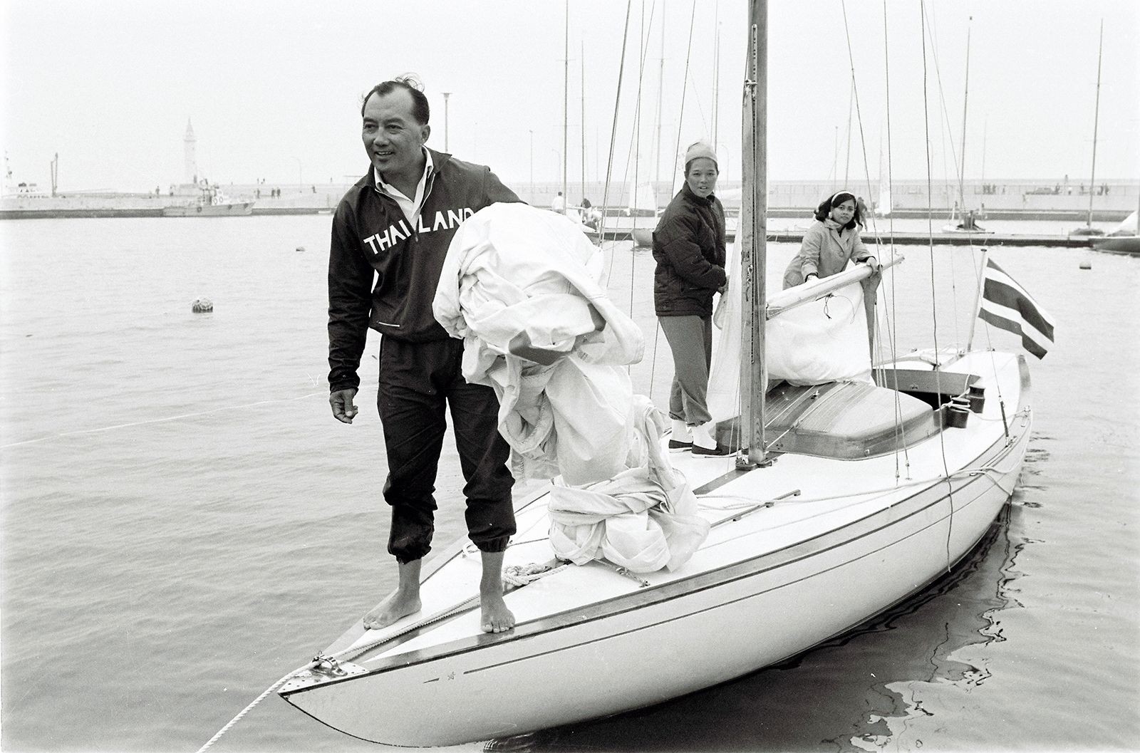 | Hoàng tử Thái Lan Birabongse Bhanudej thi đấu ở bộ môn đua thuyền cùng với Công chúa Arunee và Prateep Areerob. (Nguồn: Getty Images) |