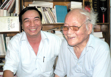 | Tác giả bên nhà văn Tô Hoài. (Ảnh: Nguyễn Đình Toán) |