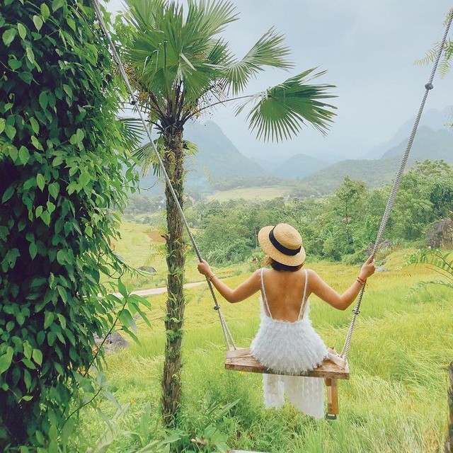 | Đặc biệt, một số khu nghỉ dưỡng sinh thái ở Pù Luông không chỉ sở hữu cảnh quan tuyệt đẹp mà còn bài trí nhiều góc tiểu cảnh sống động, phục vụ nhu cầu check-in đa dạng của du khách. (Nguồn: @vox.ngoc.hoa) |