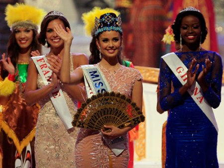 Đêm thi không có các phần trình diễn áo tắm, trang phục dạ hội mà các thí sinh chỉ ra sân khấu để nghe kết quả các Top 20, Top 10, Top 6 và trả lời phỏng vấn trước khi tên người chiến thắng được xướng lên. Trong hình là Top 6: (Từ trái qua) Miss Gibraltar - Maroua Kharbouch (do khán giả bình chọn), Miss Tây Ban Nha - Elena Ibarbian Jimenez, Miss Brazil - Sancler Frantz Konzen, Miss Ghana - Carranza Naa Okailey Shooter, Miss Philippines - Megan Young và đại diện Pháp - Marine Lorpheline.