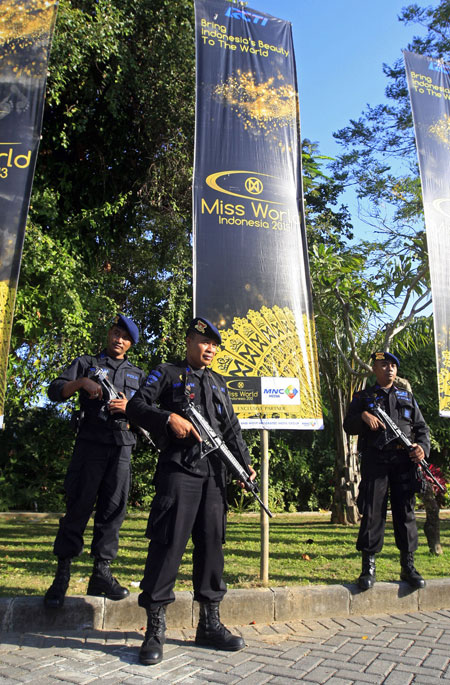 Lực lượng an ninh bảo vệ Miss World 2013. Đêm chung kết diễn ra an toàn dù trước đó nhiều người lo ngại sự đe dọa khủng bố của các nhóm Hồi giáo cực đoan. Năm 2014, cuộc thi sẽ diễn ra ở London, Anh.