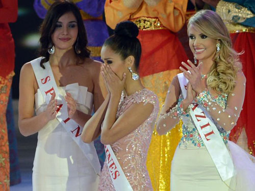 Người đẹp 23 tuổi đến từ Phlippines - Megan Young - xúc động khi được xướng tên là người chiến thắng.