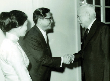 | Ông bà Đại sứ Võ Văn Sung tiếp ông Trần Văn Hữu – cựu Thủ tướng thời Bảo Đại, tại Đại sứ quán VN Dân chủ cộng hòa. |