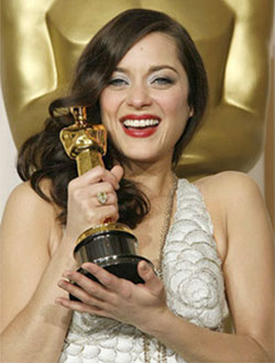 | Diễn viên Marion Cotillard với tượng vàng danh giá |