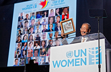 | Tổng thư ký Liên hợp quốc Ban Ki-moon tại Hội nghị toàn cầu về phụ nữ ngày 10/3 tại New York. |