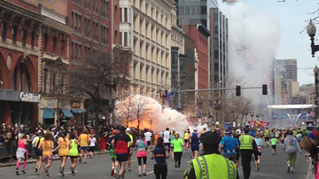 | Khung cảnh hỗn loạn ngay sau vụ đánh bom ở thành phố Boston (Mỹ) ngày 15/4/2013. |