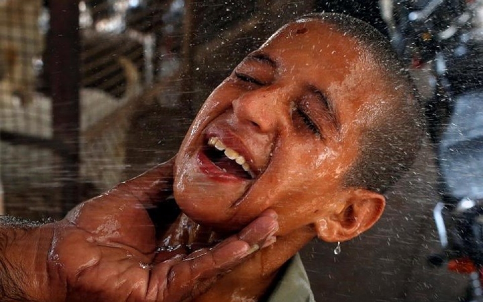 | Cậu bé tận hưởng làn nước mát giữa cái nóng khủng khiếp. (Nguồn: Reuters) |