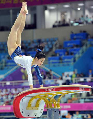 7. Phan Thị Hà Thanh là cái tên được kỳ vọng nhất của thể dục dụng cụ ở kỳ ASIAD lần này. Dù phải tranh tài với những VĐV hàng đầu đến từ CHDCND Triều Tiên hay Trung Quốc, Hà Thanh vẫn thi đấu ấn tượng để giành HCĐ ở nội dung nhảy chống và ngay sau đó là tấm HCB ở nội dung cầu thăng bằng. Phong độ xuất sắc của Thanh tại Incheon đã giúp thể dục dụng cụ Việt Nam có được những tấm huy chương đầu tiên trong lịch sử tham dự các kỳ Á vận hội.