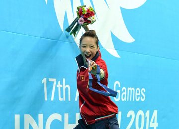 4. Ngày 23/9 đánh dấu cột mốc lịch sử của bơi lội Việt Nam khi kình ngư Nguyễn Thị Ánh Viên mang về tấm HCĐ ở nội dung 400m hỗn hợp cá nhân. Đây là tấm HCĐ đầu tiên của bơi lội Việt Nam tại ASIAD. Ngay sau đó, Ánh Viên tiếp tục thi đấu xuất sắc để giành thêm chiếc HCĐ ở nội dung 200m bơi ngửa, qua đó khép lại một kỳ Á vận hội khá thành công của cá nhân Ánh Viên cũng như đội tuyển bơi lội Việt Nam.