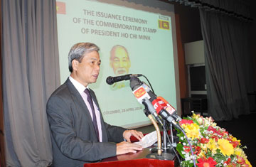 Nhấn mạnh Hồ Chí Minh là lãnh tụ nước ngoài thứ hai sau Thánh Mahatma Gandhi - lãnh tụ Ấn Độ có tem phát hành tại Sri Lanka, Bộ trưởng Nguồn Nhân lực, Tổng Bí thư Đảng Cộng sản Sri Lanka Dew Gunasekara khẳng định cùng với việc dựng tượng đài Hồ Chí Minh tại Colombo cuối năm 2013, đợt phát hành tem về Bác Hồ lần này là sự kiện quan trọng đánh dấu tình hữu nghị truyền thống và quan hệ tốt đẹp ngày càng phát triển của nhân dân hai nước Sri Lanka và Việt Nam.