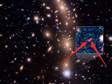 | Hình ảnh do kính thiên văn Hubble chụp cụm thiên hà MACSJ 0416.1-2403 và hình ảnh của Tayna. (Nguồn: The Space Reporter) |