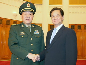Tại buổi tiếp đoàn đại biểu quân sự cấp cao Trung Quốc, Thủ tướng Nguyễn Tấn Dũng bày tỏ vui mừng trước những bước phát triển toàn diện, ngày càng đi vào chiều sâu của mối quan hệ đối tác hợp tác chiến lược toàn diện Việt Nam-Trung Quốc.