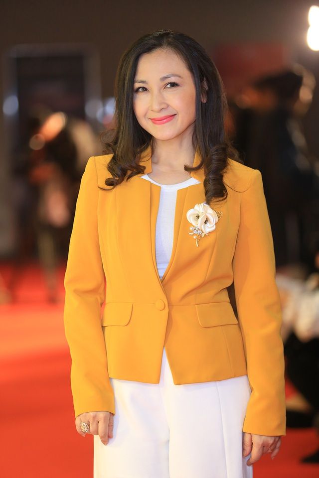 | Nghệ sĩ Khánh Huyền đảm nhận vai bà Hai trong phim. Tối qua, chị dắt theo hai con với người chồng đầu đến dự lễ ra mắt phim. |