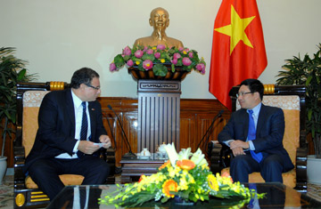 Thay mặt Chính phủ Việt Nam, Phó Thủ tướng, Bộ trưởng Phạm Bình Minh đánh giá quan hệ hợp tác giữa hai nước trong những năm qua phát triển tích cực, nhất là kết quả đạt được trong các chuyến thăm lẫn nhau của Lãnh đạo Cấp cao và Bộ, ngành hai nước; hợp tác kinh tế thương mại song phương tuy còn khiêm tốn, nhưng đang trên đà phát triển nhanh, đạt mức 120 triệu USD trong năm 2014, cao gấp hơn 4 lần so với năm 2007; hai nước còn nhiều dư địa hợp tác trong các lĩnh vực như nông nghiệp, chăn nuôi, chế biến nông - thủy sản, công nghệ sinh học… Phó Thủ tướng Phạm Bình Minh đánh giá cao việc Uruguay mở Đại sứ quán tại Hà Nội từ năm 2011 và quyết định công nhận Quy chế kinh tế thị trường cho Việt Nam vào năm 2013, đóng góp tích cực vào việc tăng cường quan hệ hữu nghị và hợp tác song phương Việt Nam – Uruguay; đánh giá cao hai nước phối hợp và hợp tác chặt chẽ tại các tổ chức quốc tế và diễn đàn đa phương, nhất là tại Liên Hợp quốc. Nhân dịp này, Phó Thủ tướng Phạm Bình Minh bày tỏ mong muốn Hạ viện Uruguay tiếp tục quan tâm thúc đẩy các nỗ lực của Chính phủ hai nước nhằm tăng cường quan hệ song phương, ủng hộ việc ký kết và phê chuẩn các văn kiện hợp tác giữa hai nước.