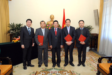 | Phó Thủ tướng Chính phủ, Bộ trưởng Ngoại giao Phạm Bình Minh và các đồng chí được bổ nhiệm. |