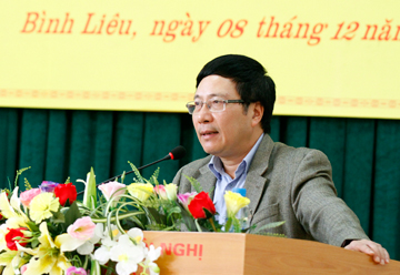 | Phó Thủ tướng Phạm Bình Minh cùng đoàn đại biểu tỉnh Quảng Ninh tiếp xúc cử tri tại các huyện Tiên Yên và Bình Liêu. (Ảnh: VGP) |