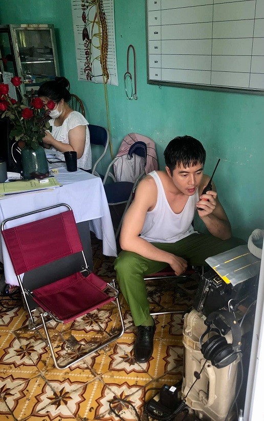 Doãn Quốc Đam cũng vừa chia sẻ loạt ảnh chụp cùng người vợ màn ảnh trên một chiếc chõng che ở bối cảnh phim khiến nhiều khán giả thích thú.
