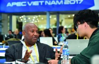| Phóng viên quốc tế đặt câu hỏi tại họp báo Lễ ký “Tuyên bố Hà Nội” giữa Tổng công ty Xi măng Việt Nam (VICEM) và Công ty FLSmidth (Đan Mạch). (Ảnh: Trường Quân) |