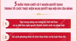 | Tổ chức thực hiện Nghị quyết Đại hội XIV: 5 điểm then chốt có ý nghĩa quyết định Nghị quyết Đại hội XIV đã xác định những mục tiêu phát triển chiến lược của đất nước trong giai đoạn mới và đặt ra ... |