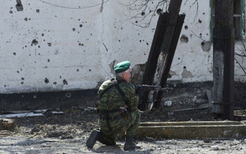 | Một tay súng của lực lượng ly khai trên đường phố Mariupol hôm 20/3 (Nguồn: AFP). |