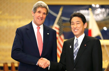 | Ngoại trưởng Mỹ John Kerry (trái) và Ngoại trưởng Nhật Bản Fumio Kishida tại Tokyo, ngày 14/4/2013. |