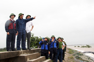 | Đồng chí Nguyễn Văn Đọc, Chủ tịch UBND tỉnh kiểm tra tại khu vực đê Hà Nam (Quảng Yên). |