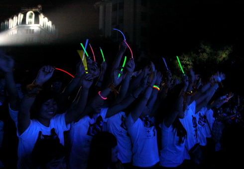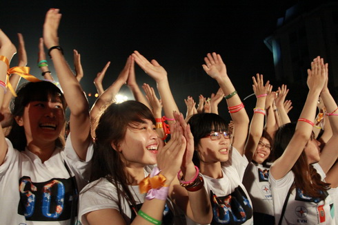 Quảng trường CMT8 trở nên lung linh với ánh sáng từ những chiếc vòng tay của các bạn sinh viên.