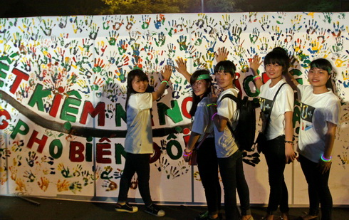 Mọi người để lại dấu ấn lên bức tranh của chiến dịch năm nay với chủ đề “tiết kiệm năng lượng - Ứng phó biến đổi khí hậu”.