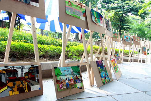 Khu vực Nhà bát giác, phía sau Tượng đài Lý Thái Tổ được tô điểm nhiều sắc màu nhờ những bức tranh của các em nhỏ trong cuộc thi vẽ tranh về Hà Nội.