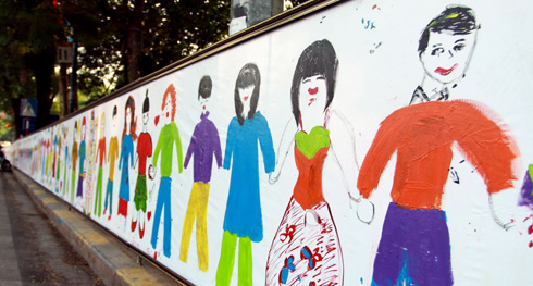 Bức tranh bao quanh sân sau của vườn hoa Lý Thái Tổ (cao 1,5m, dài 300m) được Trung tâm sách kỷ lục Việt Nam xác lập là “Bức tranh vẽ hình trẻ em nắm tay nhau kết nối gửi thông điệp vì hòa bình lớn nhất”.