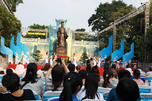 Sân khấu chính của vườn hoa Lý Thái Tổ luôn có rất đông khán giả đến theo dõi và cổ vũ cho các tiết mục của các nghệ sĩ.
