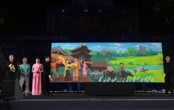 Trong ánh sáng lung linh của đêm Thu Hà Nội, những tháp cổ, tường thành và cổng Đoan Môn được chiếu sáng bằng công nghệ 3D mapping, hòa cùng âm nhạc và vũ điệu từ khắp các châu lục tạo nên bức tranh văn hóa sống động và đầy cảm xúc.