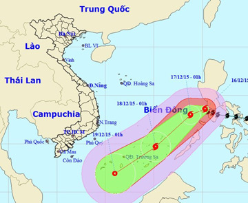 | Cơn bão hướng thẳng vào trung tâm quần đảo Trường Sa của Việt Nam. (Nguồn: NCHMF) |