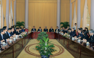 | Chủ tịch nước Trương Tấn Sang tiếp đoàn Ủy ban Kinh tế Nhật – Việt thuộc Liên đoàn các tổ chức kinh tế Nhật Bản. (Ảnh: TTXVN) |