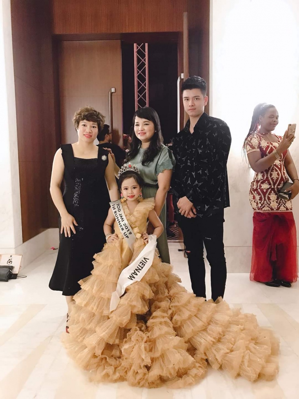 | Siêu mẫu nhí Trần Thị Hoàng Vân và gia đình tại Cuộc thi Junior Model International 2019. | |