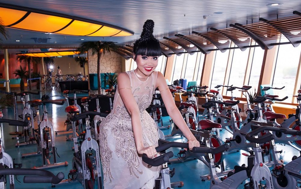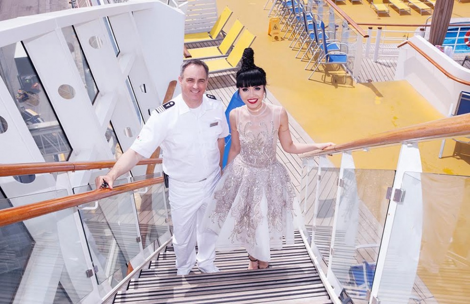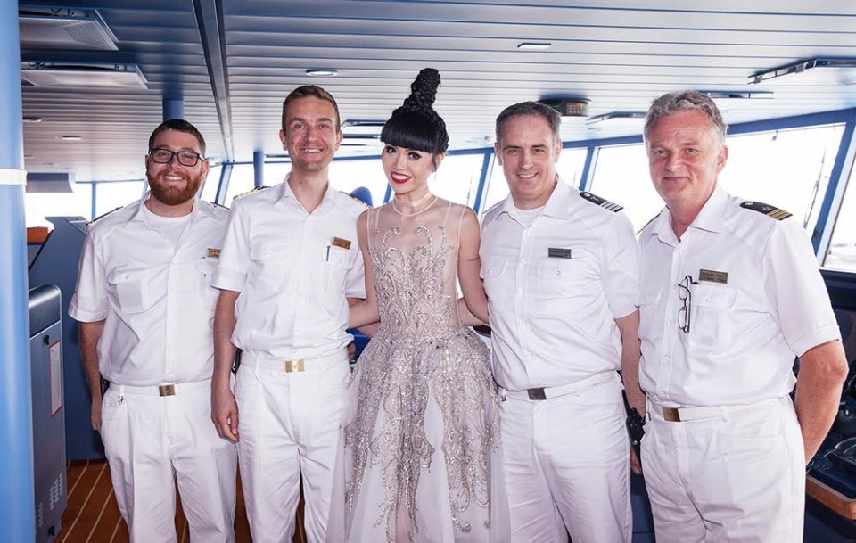 | Jessica Minh Anh được thuyền trưởng giới thiệu các khu vực trên tàu. (Ảnh: JMM) |