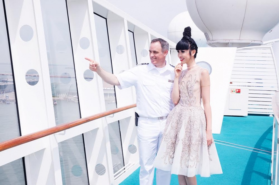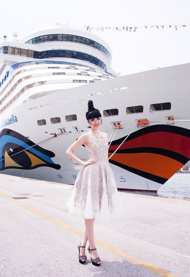 | Siêu mẫu bên con tàu AIDAluna. (Ảnh: JMM) |