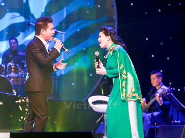 | Anh Thơ và Trọng Tấn trong liveshow Tình xa khơi. (Ảnh: Hải Bá) |